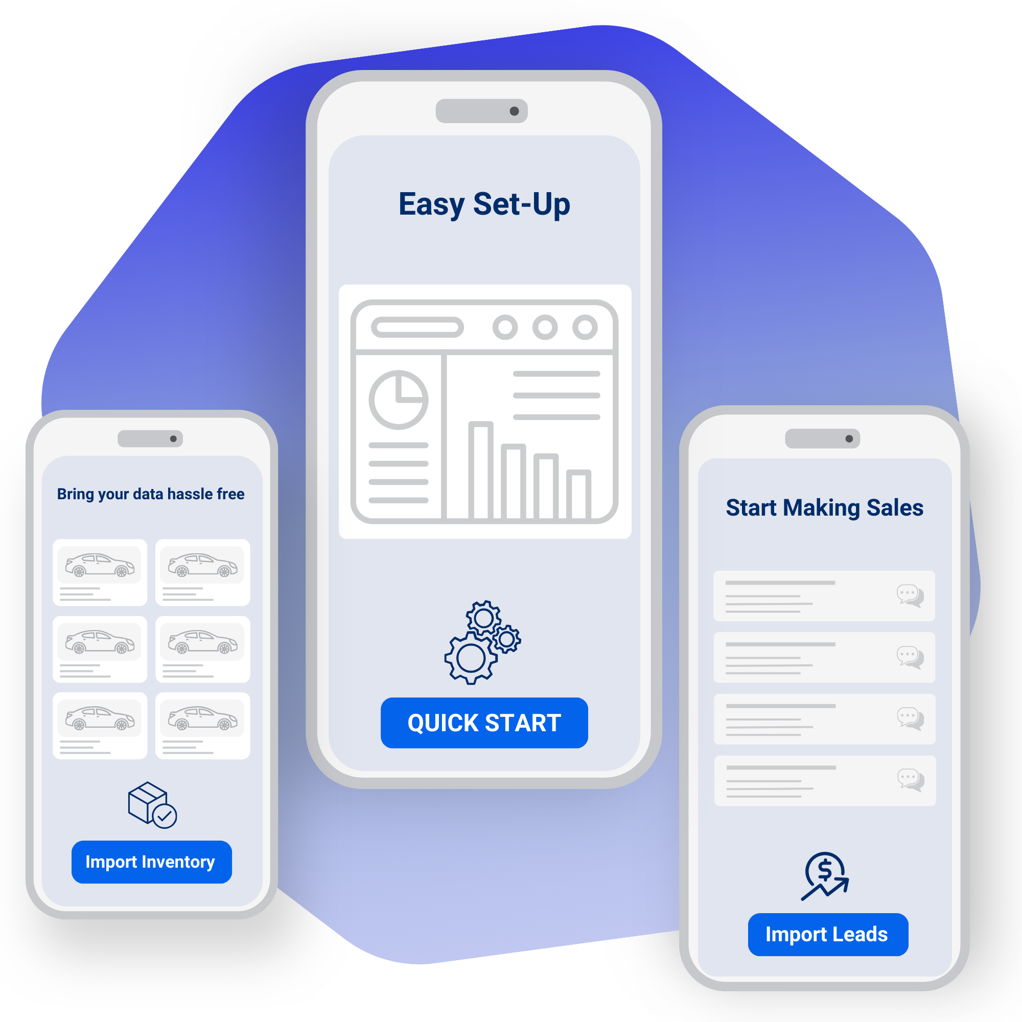 Bring your data, no hassle: Import your leads and inventory in a few clicks.